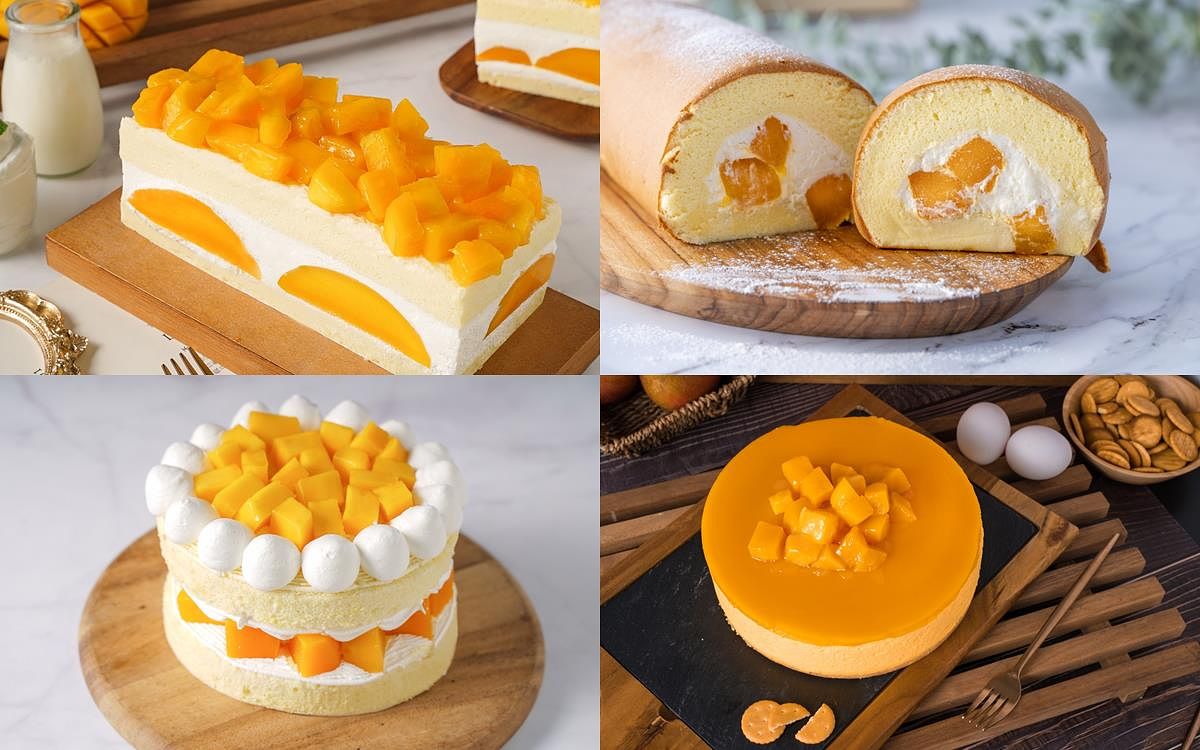 【台灣愛文芒果蛋糕捲】柔軟扎實的蛋糕捲入整顆的愛文芒果與滑順不膩口的法國特調鮮奶油,入口立刻感受到芒果的酸甜,融合了滑順的鮮奶油與扎實海綿蛋糕,在口中迸出甜蜜的夏日風情。【台灣愛文芒果慕斯蛋糕】最上層為芒果果泥製成的果凍與鮮芒果丁的組合,內層為冰涼清爽的芒果慕斯與新鮮芒果丁,中間再夾著綿密柔軟的香草戚風蛋糕,底層舖著由奇福餅乾與杏仁角特製的香酥餅乾體,多層次口感與濃厚的芒果香氣很上癮,冰涼口感也是夏日消暑的最佳甜點。