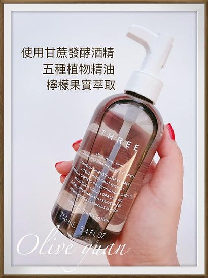 你們的乾洗手都只有茶樹精油的味道嗎?香味也是THREE的強項,裡面有迷迭香、綠花白千層、澳洲尤加利、乳香、紅橘果皮等精油,味道非常高級。我跟公關說這個容量太大了啦!都不能隨身攜帶,只能放在家裡玄關或辦公室,可是明明買分裝噴瓶來裝就好啦!大瓶的價格才划算啦!正因為是一天中會多次使用的品項,當然要用成分最好又最舒適的乾洗手。