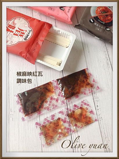 今天來吃「椒麻映紅瓦」口味,它的麵條有兩種,這次買的都是雙花粗麵,因為麵條中間有一道壓痕,所以調味料很入味,粗細剛剛好,另外還有細花圓麵。但包裝上的文案有點問題,會讓人誤會一包附兩種麵條。一包兩人份,現在特價真的很值得囤貨!