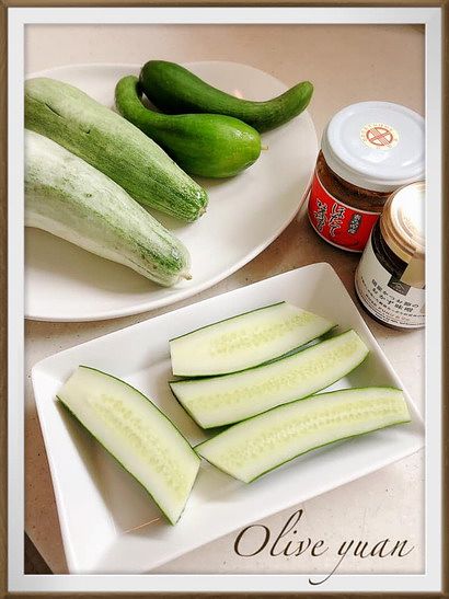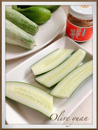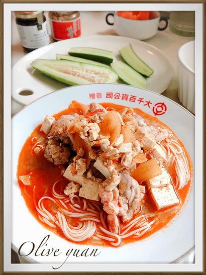 小黃瓜則很單純,只要沾男友送的味噌醬就很好吃了,瓜類都要冰冰的吃。然後主菜是麻婆豆腐麵線。