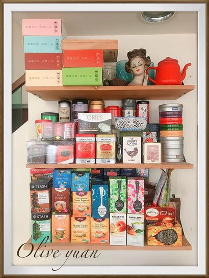 製作人說我家的這個角落很有意思!很像賣茶包的店!但~好茶們都是精選中之再精選!「YOGI」瑜伽茶是我的最愛,原本是印度瑜伽大師在下課後給同學們品嚐的舒壓茶,後來才變成商品,但品牌屬於美國不是印度,在美國很紅,我喜歡的系列主要都是以辛香料為主。