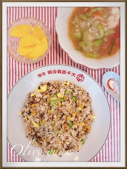 我很難得會煮白米飯。因爲週日約會得在家吃飯,但男友又不吃糙米,所以白米飯裡我至少加了點彩色藜麥,也因為有米飯,今天就做了炒飯,並出動食物倉庫中的「真空包肉醬、罐頭玉米粒、冷凍毛豆」,然後雲吞絲瓜湯再加入「蕃茄罐頭」改變一下口味,增加蔬菜量,再加一顆香吉士,非常完美(等一下再喝一杯青汁)。不是什麼需要廚藝的料理,只是想跟大家分享罐頭與冷凍蔬菜真的超好用,還有乾燥蔬菜(而且罐頭與乾燥蔬菜的營養價值,比新鮮的還高喔)。