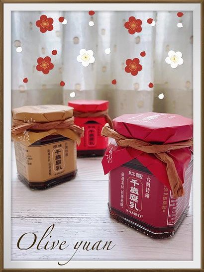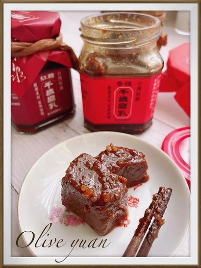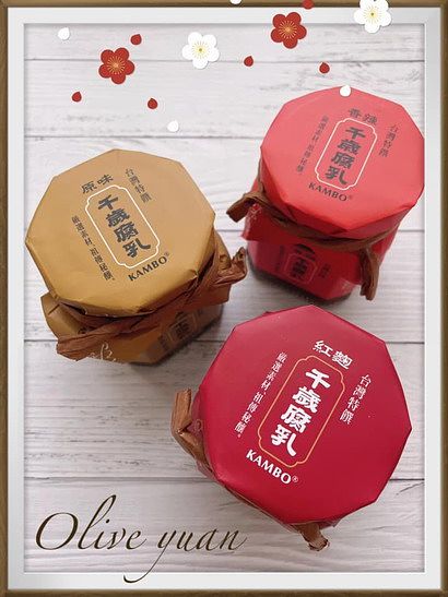 黃色腐乳使用豆麴醃製,但千歲腐乳顏色更深、更更濃郁香甜,除了原味、香辣,還有醬味醇厚、加入了紅麴呈現紅色的紅麴千歲腐乳,除了配飯,這種濃郁口味的豆腐乳也很適合炒菜,抹土司麵包,當沾醬,當湯頭。