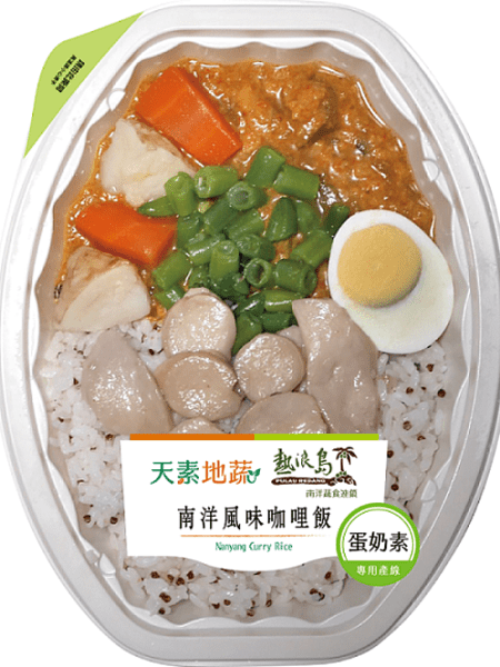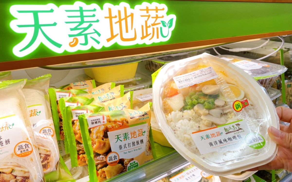 7-ELEVEN「天素地蔬」打破素食口味單調的刻板印象,與素蔬食知名品牌、專門店合作開發聯名新品,橫跨米食、沙拉、麵食、調理麵包等結構,部分商品採用話題性十足的食材「植物肉」入菜,提供多樣化的餐點選擇。6月16日起7-ELEVEN與台中知名蔬食餐廳「熱浪島」合作推出「南洋風味咖哩飯(售價85元)」運用熱浪島秘方咖哩粉,微辣口感帶有南洋天然辛香料風味,添加杏鮑菇、青刀豆等蔬菜,多層次美味,另一款「泰式打拋飯糰(售價36元)」米飯選用富有膳食纖維的超級食物紅藜麥搭配白米,內餡則以OmniPork新豬肉與正宗泰式打拋醬拌炒製成,塔香迷人微辣對味!