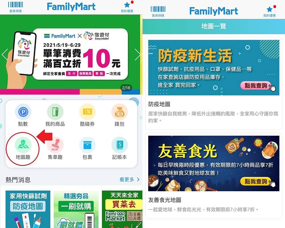 「全家」APP地圖趣種類持續增加,目前提供「友善地圖」、「防疫地圖」,與即將登場的「蔬食地圖」,讓欲購買相關商品的民眾,都可預先查詢,變得更加便利。「蔬食地圖」系統每半小時更新一次,使用者可透過「即時定位」顯示所在地半徑1公里內各店舖的商品概況;運用「收藏店舖」將個人偏好或常去的店舖收藏起來;「單品搜尋」則可依據素食種類或商品種類查找需求品項,即會媒合出附近有供貨的店舖名單,不用再為了買不到而煩惱。