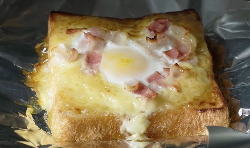 就這樣輕鬆的四個步驟,不到5分鐘就完成麻藥吐司了!加熱過美乃滋融在吐司中,吃起來濕潤又香濃,鹹鹹甜甜的味道就像麻藥一樣吃過就愛上。切開之後半熟的蛋液流開,真的超療癒!