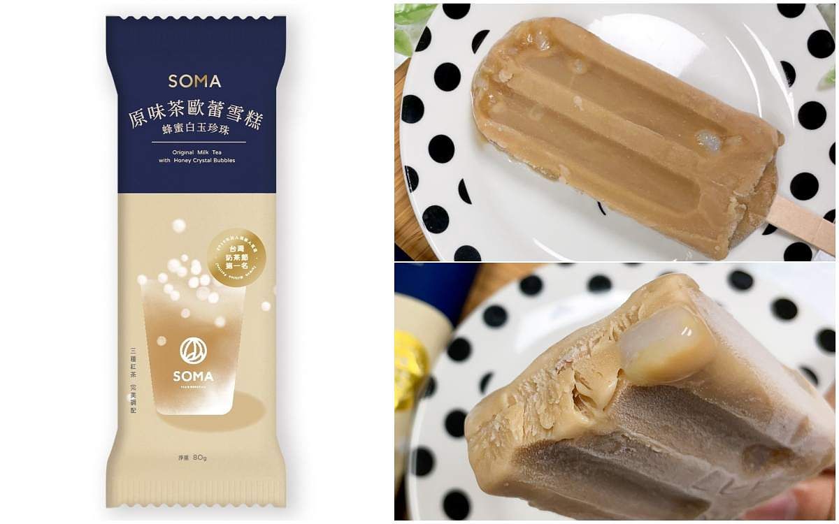 全家與東區手搖名店SOMA合作的「原味茶歐蕾雪糕」,以店內主打的飲品原味茶歐蕾開發,研發出兼具濃郁奶香與淡雅茶香的獨特雪糕,另外還加了白玉珍珠增添口感!