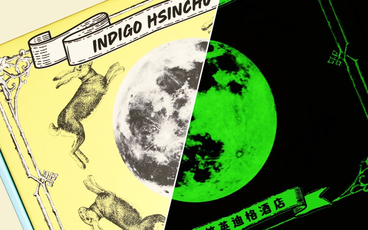 「中秋夜光禮盒」外盒以歐式復古的圖騰,搭配新潮大膽對比配色,帶來湛藍天際與皎潔明月的亮眼視覺。外盒夜光設計,不僅可以防疫在家賞月,半夜摸黑也不用挨餓,循著禮盒上的螢光月圓,在遠處即能指引你前往美味的途徑,白天夜晚各具特色!月餅口味上,新竹英迪格選搭經典美味、甜而不膩的特級蛋黃酥及秘製綠豆凸,並由主廚精心挑選在盛夏賞月之際喝起來清爽,搭配糕餅也能解膩的桂花蜂蜜與茂谷柑蜂蜜啤酒,以新竹英迪格限定設計包裝亦值得收藏!