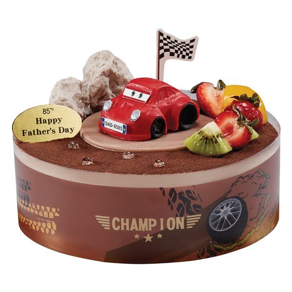 8吋「王者之風」鮮紅亮眼的跑車展示在蛋糕上,就算買不起百萬名車,這款拉風跑車可以先開回家獻給親愛的老爸。蛋糕主體是巧克力戚風蛋糕,內餡夾著巧克力鮮奶油、濃郁乳酪餡和香甜牛奶布蕾,中間抹上清爽柳橙果餡,酸甜交錯一口咬下幸福感滿滿。