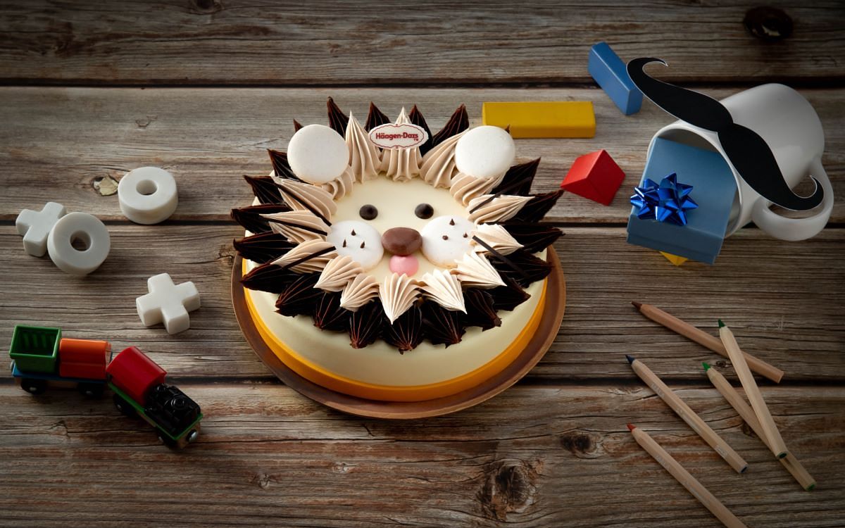 不僅推出全新High5款式,經典雙層口味冰淇淋蛋糕也呈現了不同的父親形象。為消費者提供多元選擇。「快樂獅子王」最適合送給充滿童心的新手老爸,以頂級巧克力搭配馬卡龍打造的Q版獅子造型,童趣十足;內餡選擇最受歡迎的巧克力與淇淋巧酥口味冰淇淋,讓每個大男孩,都能以「爸爸」的新身分,用笑容陪孩子再長大一次,同時訴說著爸爸在孩子心中,永遠是最佳玩伴!