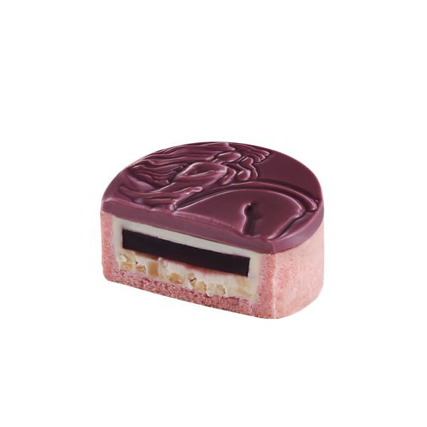 粉色調塔殼包裹著綿密香醇的玫瑰風味白巧克力,随即入口的覆盆子果味夾心,恰到好處地平衡了白巧克力的香甜,結合底層的烘焙杏仁碎,層層堆疊豐富口感體驗。