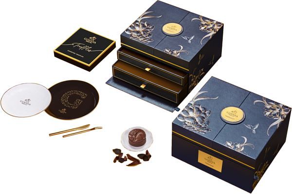 而全台限量200盒的巧克力珠寶禮盒則以高級珠寶盒為靈感,結合收納巧思,層層抽屜式的精心設計融合花開富貴圖案,乘載吉祥美好之意同時完美收藏糕點,搭配GODIVA歐式定製輕奢瓷器,優雅妝點中秋團圓時刻,是饋贈至親摯友、商業夥伴不可錯過的送禮首選!現於2021/ 8 / 13 前預購,還可獲贈客製署名燙金禮卡、GODIVA專屬封蠟與金色提袋,為你傳遞最真摯的佳節祝福,展現贈禮的精緻品味!