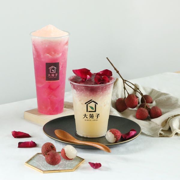 去年擄獲許多少女心的超級網美飲品「荔枝玫瑰」,今年再次登場囉!大苑子以獨家技術封存黑葉荔枝的風味,並多次進行風味測試,才在去年得以正式推出!這是一杯品嘗得到新鮮玫瑰花瓣的飲品,充滿著濃濃玫瑰氣息,喝起來微酸微甜,略帶有荔枝果肉,是一杯兼具視覺與味覺的浪漫飲品!另一款今年全新推出的「荔枝艾波」,則以文山青茶為基底調製,同樣搭配黑葉荔枝,加入些許愛玉,打成冰沙,充滿口感,尤其杯身透著粉紅的漸層色,超級適合人手一杯拍美照!