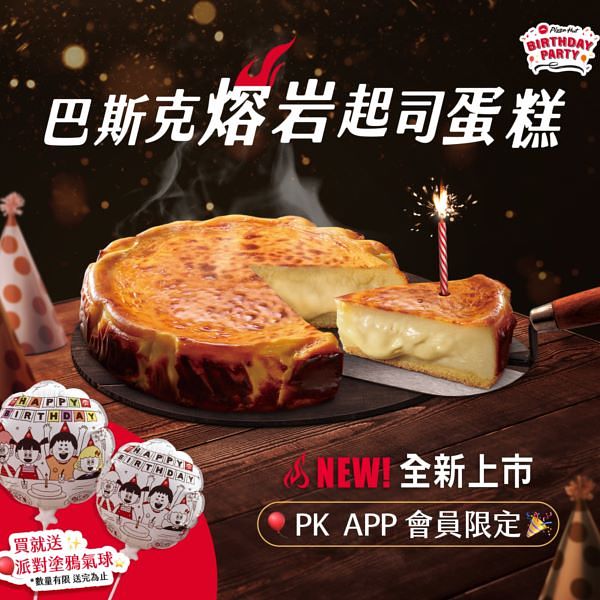 想幫爸爸過個最HOT的父親節,或是為身邊重要的人規劃最HOT的慶生?根據消費者調查,生日派對的首選餐點就是比薩大餐,而生日蛋糕更是不可或缺。必勝客這次讓大家一次就能把蛋糕、比薩等派對必備餐點在必勝客買好買滿,只要下載PK雙饗卡APP免費加入會員,訂購必勝客餐點滿700元,就能以加購優惠價549元帶走8吋「巴斯克熔岩起司蛋糕」(原價888元),現省339元;或者也可訂購「祝爸爸1688巴斯克蛋糕套餐」,以1688元將比薩、巴斯克熔岩起司蛋糕、Hot烤雞拼盤或HOT燒大拼盤、飲料一次購足,最高可省429元。PK雙饗卡會員若為當月壽星,還可使用APP會員生日禮金再折50元,多重優惠超有感!即日起凡購買必勝客「巴斯克熔岩起司蛋糕」,更限時加贈早鳥慶生好禮「自動充氣派對塗鴉氣球」,讓大人、小孩一起塗鴉同樂,吃得過癮也畫得開心,先買先送、送完為止,讓必勝客為你打造一個最HOT的生日派對、父親節派對!