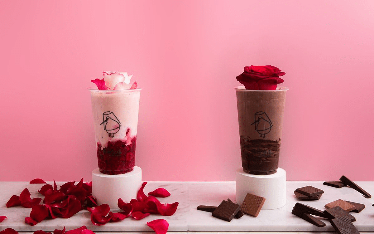 本次推出的七夕情人節限定「萌花發發戀愛組合」,限定價NT$299元。結合經典玫瑰及巧克力元素,以精選綜合莓果與每100公克含400億單位以上活性乳酸菌的雪比生優格展現花式浪漫,呈現小清新的初戀滋味,另一杯使用法國頂級VALRHONA法芙娜巧克力與雪比生優格打成巧克力優格冰沙,入口即可體會到濃郁愛戀,幸福感香甜滿溢,兩杯一組顏值超高,皆可邊喝邊賞花,加上限量療癒的發發牧場透明環保提袋,無論街邊放閃曬恩愛或社群打卡,都能成為2021年最新手搖版告白神器,同時表達愛戀心意並擄獲的對方味蕾!