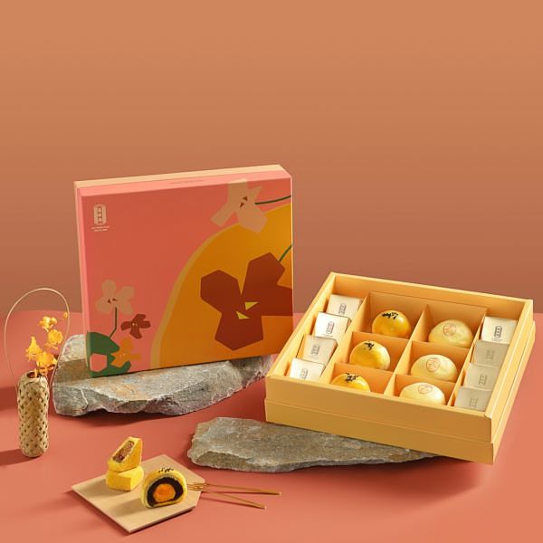 最令人期待的中秋期間限定組合「雙悅禮盒」(NTD$980),內容物有超人氣組合蛋黃酥與奢華頂級口感的松露綠豆椪。「蛋黃酥」餅皮使用特選高級麵粉以手工揉製桿平,在細緻的千層酥皮包覆之下,內餡嚴選油亮飽滿的頂級烘烤鹹蛋黃,搭配綿密手工烏豆沙餡,經由烘烤膨脹後層次分明、口感酥鬆,香氣紮實飽滿,呈現一口就難忘的黃金比例滋味!「松露綠豆椪」嚴選頂級松露油與松露鹽,與香菇拌炒後揉入綠豆沙餡中,蕈菇的鹹香搭配綠豆的清香,融合成獨特的韻味,讓人食指大動!抵抗不了的美味,送禮自用兩相宜。