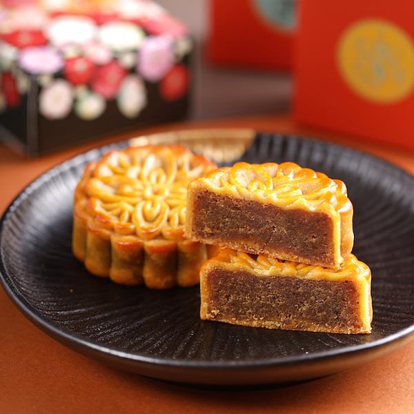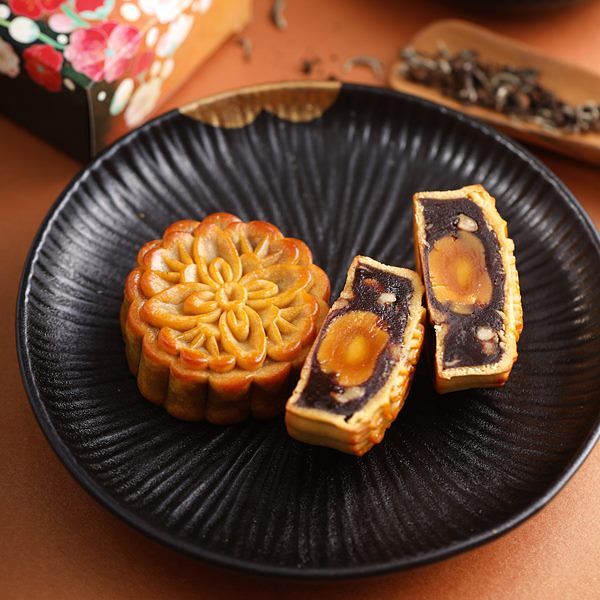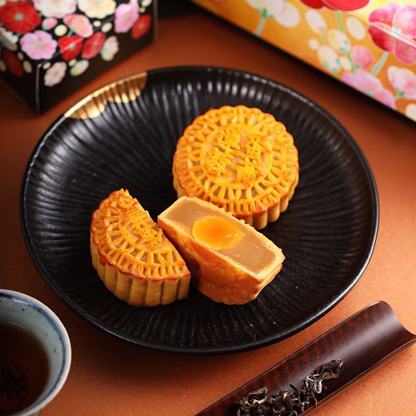 香甜細密烏豆沙包覆整顆鹹蛋黃,香氣豐厚濃郁,鹹甜交織的中秋經典滋味,齒頰留香難以忘懷。