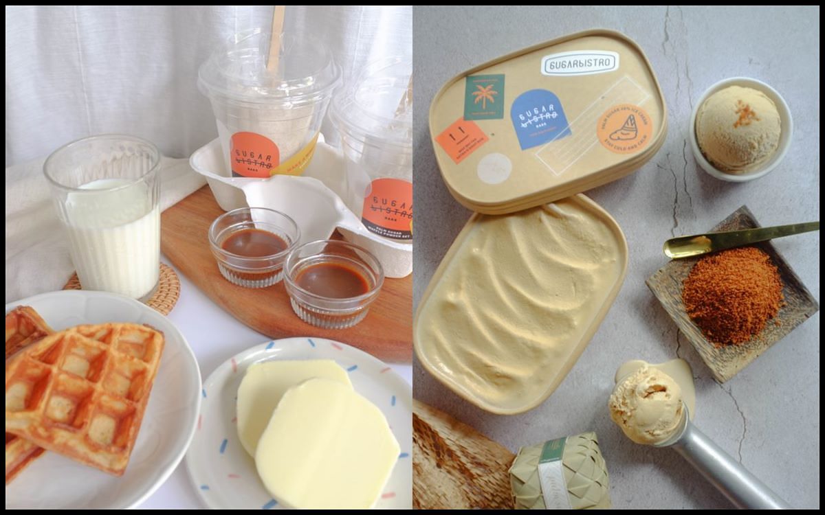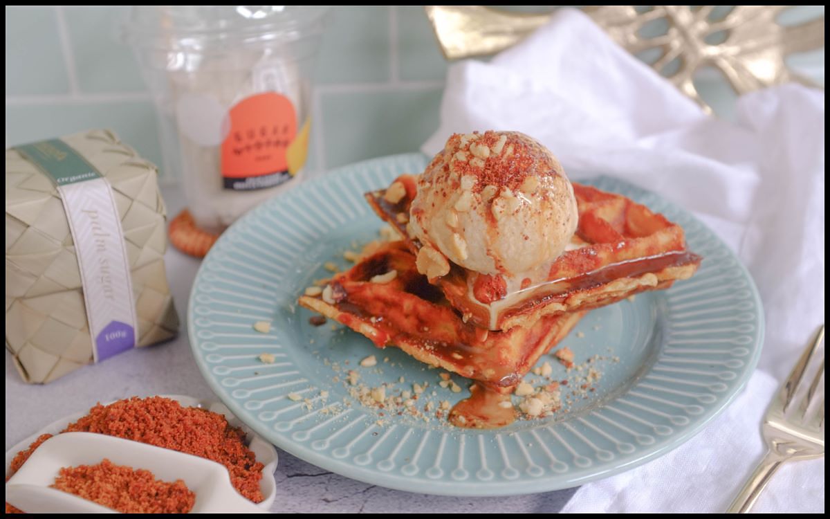 嚴選了日本小麥芯粉與裸麥粉及棕櫚糖完美比例獨家調配,由於在鬆餅粉內添加了有機棕櫚糖,因此在口感與香氣上更是受有別於一般市售鬆餅,外表微微的酥脆內裏綿密濕潤的口感,不添加乳化劑、香料、加工澱粉及泡打粉並搭配法國無塩奶油的濃郁奶香,只要準備雞蛋和牛奶就能在家簡單自製美味鬆餅,體驗 DIY 自製甜點的樂趣,還能添加自已喜歡的食材、果醬或新鮮水果,也可以直接淋上 SUGARbISTRO 精心調制的泰奶醬,最後在頂端放上一球<38%重乳棕櫚糖生淇淋>,一起送入口中感受鬆餅與冰淇淋在嘴裡相溶綿密濕潤的口感,讓人吃進嘴裡,甜在心裡,不管是自已的 Me Time 或與另一半一起享受棕櫚糖鬆餅都能帶來的最美好的幸福滋味。