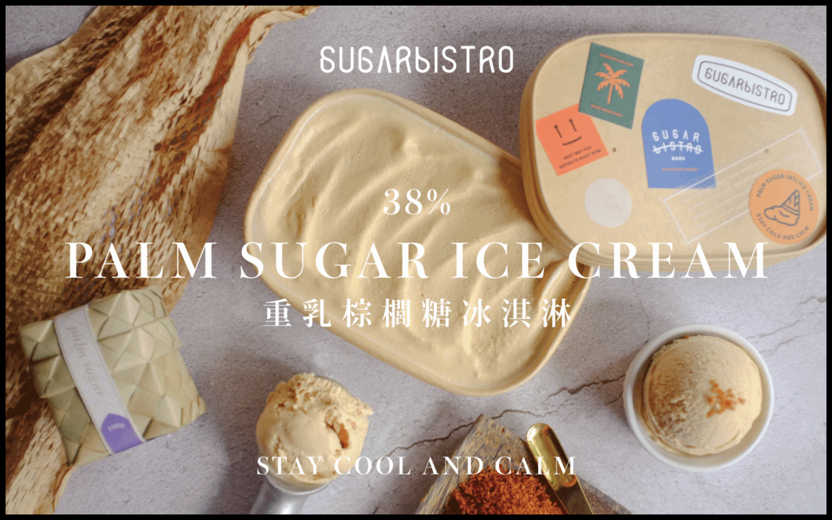 今年夏天 SUGARbISTRO 要提供妳最健康的低 GI 冰淇淋 <38%重乳棕櫚糖生淇淋> ,強調比一般市售的冰淇淋減糖 60%,使用純天然的鮮奶與動物性鮮奶油,沒有添加色素,香精,砂糖任何化學香料,讓妳吃了對身體無負擔。而全球能吃得到棕櫚糖冰淇淋的地方極其稀少,在此之前只有柬埔寨,暹粒的法國五星級飯店<Park Hyatt Siem Reap>有在販售棕櫚糖冰淇淋;現在不在需要飛到柬埔寨就能輕鬆在家吃到與五星級飯店相同的棕櫚糖冰淇淋SUGARbISTRO <38%重乳棕櫚糖生淇淋> 選用英國原裝進口乳源,乳脂高達 38%的動物性鮮奶油與 CAMGOLDIA 有機棕櫚糖;經慢火熬煮,經過一夜低溫冷藏熟成乳化,成就出入口即化的綿密口感;十足濃醇奶香及獨特的棕櫚糖花蜜香氣融合成獨一無二的絕佳香氣,濃濃奶香,絕對讓妳忍不住一口接一口,除了單吃生淇淋也可用來搭配任何飲品及甜點一起食用,給妳滿滿沁涼消暑的幸福感!!