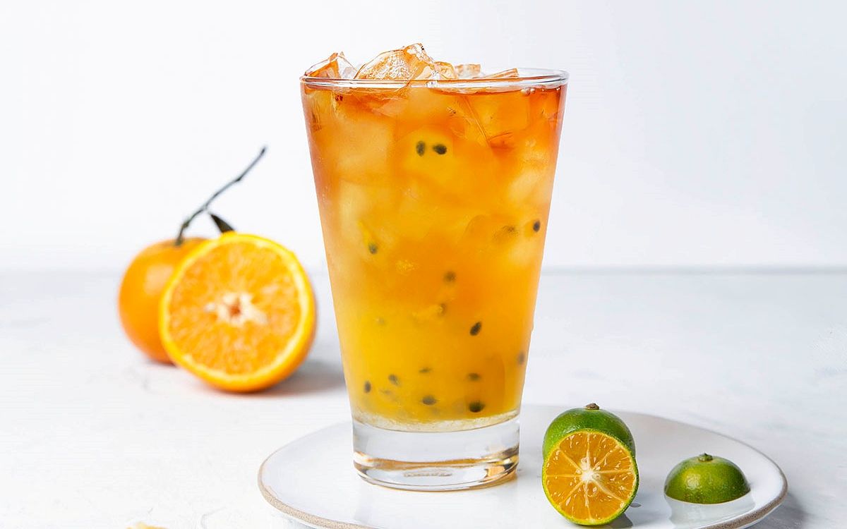 以紅茶為基底,加入低溫冷凍的百分百果汁,以及新鮮的柳橙、百香果、金桔,酸甜清爽又解膩,不喝咖啡人的最推薦的首選!