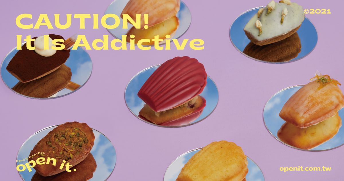 來自台灣在地的瑪德蓮專門品牌,open it,由一群極度熱愛瑪德蓮的人們所創立,特別邀請高雄知名法式手工甜點店,法絨Velvet Patisserie的甜點師Vicky,來擔任品牌口味研發主廚,要讓擁有200年歷史的法式甜點瑪德蓮,在一絲不苟的職人精神下,使用法國進口原料並善用台灣在地食材,賦予瑪德蓮更多的變化,不僅在視覺上引起驚嘆,更要在每一口咬下的瞬間,幻化成使人朝思暮想的萬千滋味。