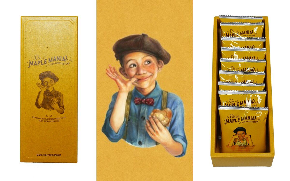 【The maple mania 楓糖男孩】品牌故事的舞台背景發生於美國古老卻美好的時代,那是個音樂及電影文化藝術濃厚的年代,充滿明亮活潑氣息、洋溢著夢想;而在那個時代中成長的男孩,最喜歡惡作劇及楓糖甜點。在如此時空背景之下,【The maple mania 楓糖男孩】的每一樣甜點,都蘊含著那份玩心、童年的冒險情懷以及惡作劇的小心思,除商品以復古風為設計主軸,每份甜點包裝更設計小男孩不同表情的生動活潑圖案,期望消費者在品嚐【The maple mania 楓糖男孩】時,透過濃濃的楓糖甜蜜,喚起童稚時期毫無顧忌、俏皮活潑的那一瞬間,憶起難忘的歡欣喜悅回憶,「楓糖男孩」至今仍秉持著這個理念,為顧客獻上楓糖最美好的甜蜜滋味。目前主要有東京車站地下一樓的GRANSTAグランスタ、新宿街頭和LUMINE北千住店一樓這三間專賣店,另外羽田機場也有設櫃,以及不定期在各地的期間限定販賣,而9月將是【The maple mania 楓糖男孩】首度來台快閃販售,甜品控別錯過了。