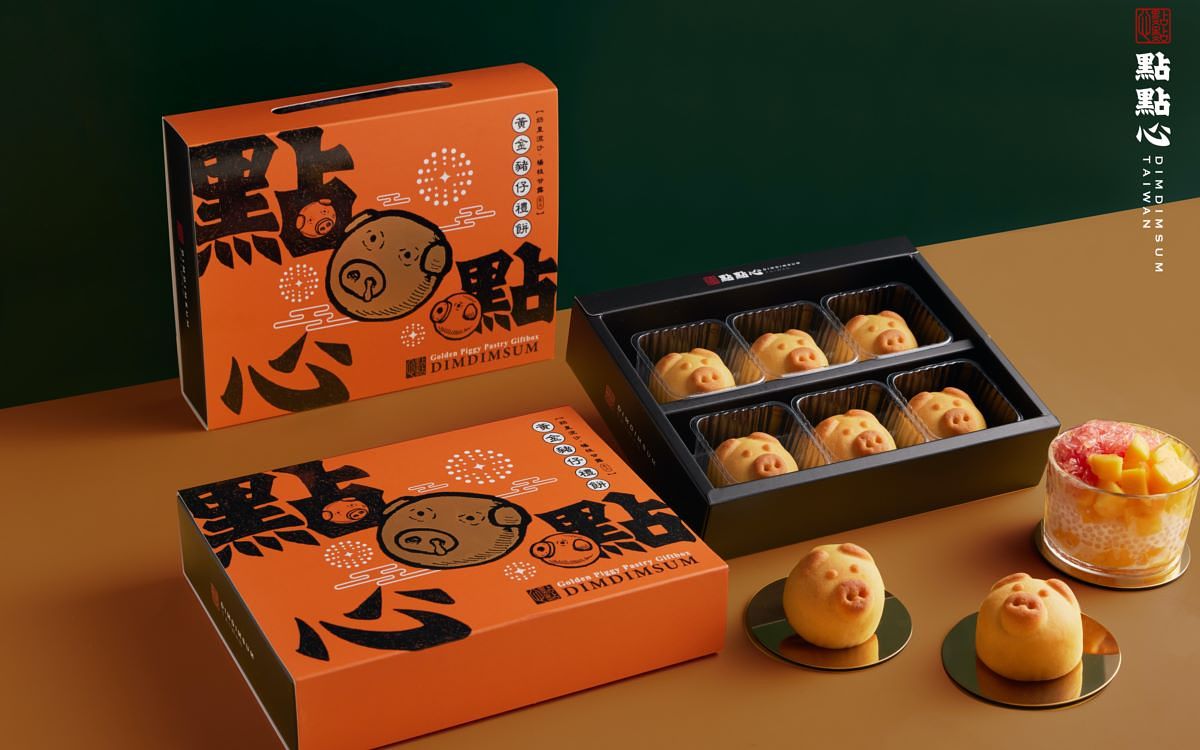 主打「好吃新奇又好玩」的超人氣港點品牌『點點心』,去年中秋推出豬仔造型奶皇月餅造成搶購,短短兩週銷售破萬盒,今年更加碼推出『黃金豬仔禮餅』6入組,港式復古潮流勢必掀起另一波豬仔熱潮。豬仔造型五官立體又渾圓,萌呆表情十分逗趣,烤得金黃的外皮象徵光亮圓月、代表富貴晶瑩,顆顆都是滿溢心意;內餡則是經典港式茶樓雙口味:中西融合的「奶皇流沙」,選用上等奶油與鹹香蛋黃,揉合出黃金比例流沙內餡,一口咬下、滿餡流出;另一口味則是港式國民甜品「楊枝甘露」,清涼芒果、清新柚香,粒粒口感層次堆疊,翻玩最具代表的茶樓經典。