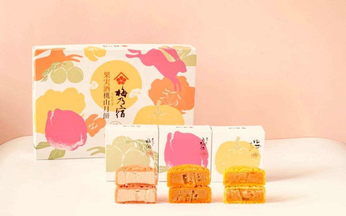 這次選用自豪的人氣酒款「細果粒果實酒」加進月餅中,以日式和菓子經典「桃山餅皮」做出高級質感,內餡在經典豆沙餡的基礎上加入梅乃宿經典細果粒酒,共有柚子、白桃、青梅3種口味,每款都能嚐到豐富果肉內餡,酸甜可口。