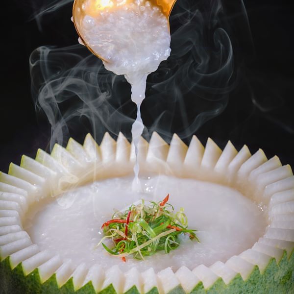 粥底火鍋之主角在於米,主廚深諳台灣優良米種與品質,走訪多處,挑選台灣越光米、雲林芋頭香米、花東桂花香米、雲林七葉蘭香米、長糯米與泰國香米共六種米,多次測試調整比例,手工慢煮二小時,適度推攪,達到廣東順德所謂"吃米不見米"、"粒粒開花"的完美粥糜境界,溫潤米香漫溢,入口散發天然甘甜。挑選雲林直徑30公分以上的青皮冬瓜裝盛上桌,搭配現流魚生、鮮蝦、冬瓜粒享用鮮甜滋味與甘美米粥。傳統順德菜將粥底視為火鍋湯底,逐樣加入海鮮、肉品、蔬菜涮煮享用,最後食材的精華與粥底融合,香濃甘鮮、暖心暖胃。