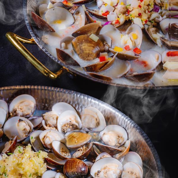 保有蛤蜊最精華鮮甜湯汁,大量新鮮蒜末、白胡椒粒、青尖椒、紅尖椒、宜蘭三星蔥共煮,無多餘調味,融合食材原味鹹鮮甘美,尾韻香醇微辛。