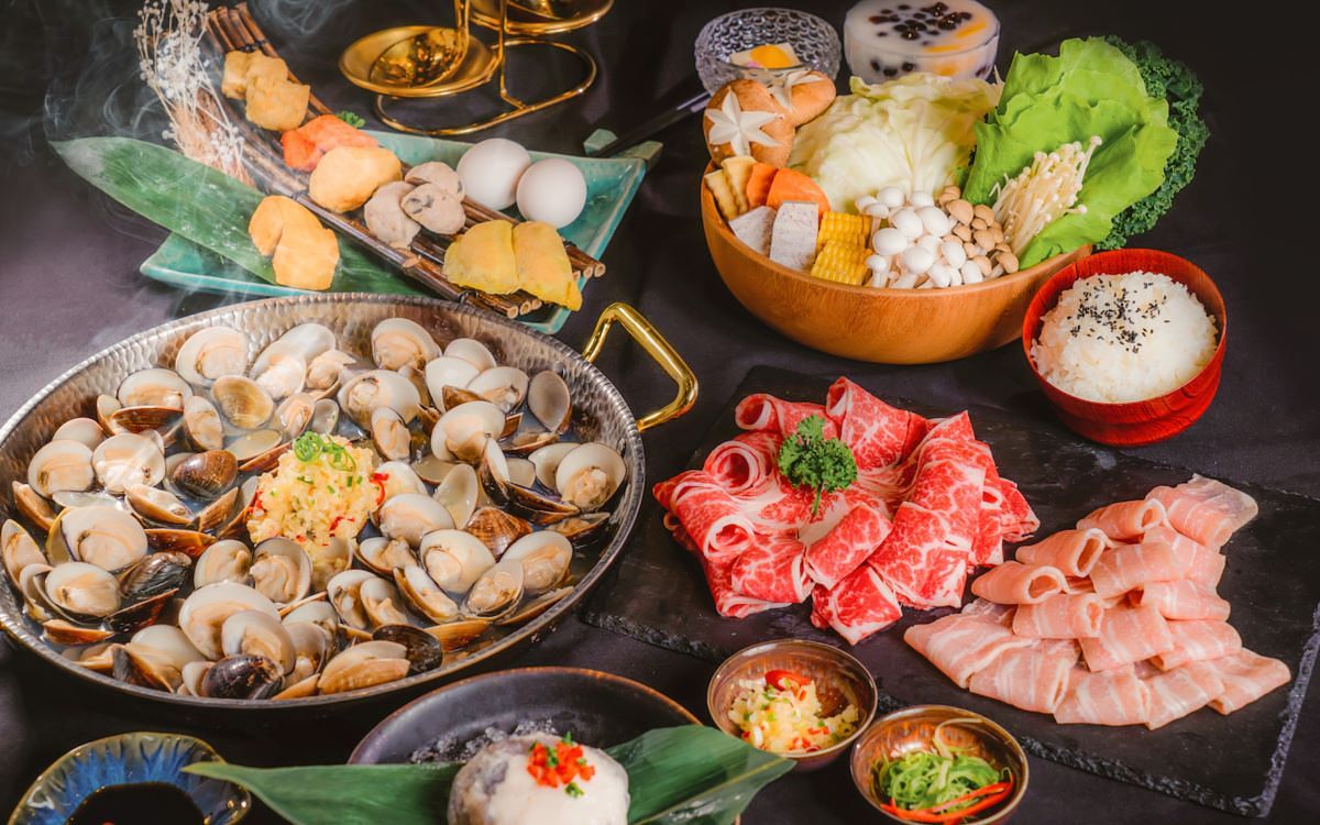 卜卜蜆套餐兩人起鍋,每人980元起含原味卜卜蜆鍋、肉品、火鍋料拼盤、綜合生鮮蔬菜、白飯/雞蛋/寬冬粉/讚岐烏龍麵(擇一)、手工滑(鮮蝦/墨魚/花枝/豬肉擇一)、餐後甜品。