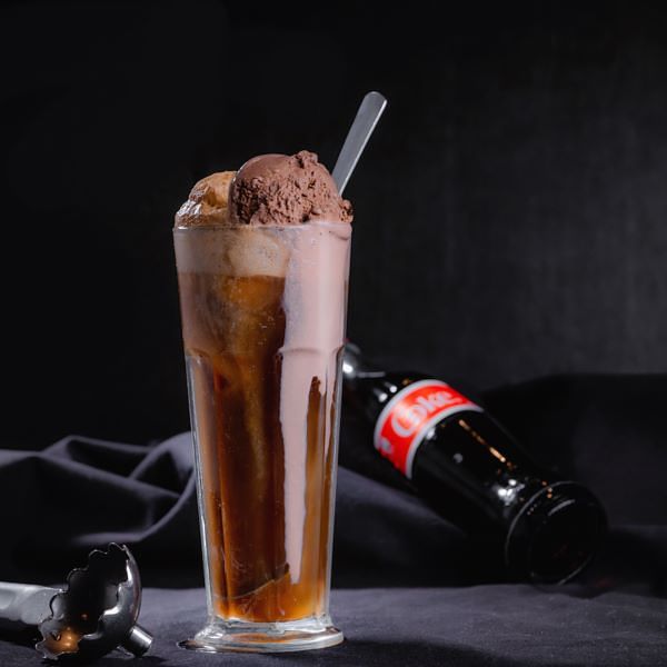 香港西餐廳懷舊飲品,可樂加入巧克力冰淇淋黑撞黑的獨特邪惡組合,特別挑選巧克力味更為濃醇但甜度較低的冰淇淋,搭配可樂更為和諧。可樂的沁涼氣泡刺激感結合香濃滑順巧克力冰淇淋,炎夏讓味蕾感受黑色冰風暴的急凍甜郁魅力。