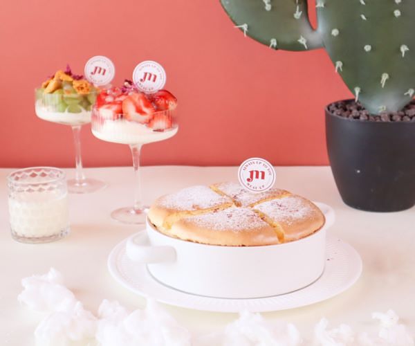 今年五月爆發嚴重疫情,隨後進入二級警戒,位在西門町的Meat Up為配合政府防疫措施,因此選擇暫時停止營業,在經過三個月的時間沈澱與規劃後,終於在九月份正式回歸,並推出多款全新浮誇係甜點與大家見面,本次以果實系為主題,選用美國進口碩大酸甜草莓,以及來自日本福岡的白葡萄,結合招牌甜點舒芙蕾、巴斯克乳酪蛋糕,此外更首度推出直徑約20公分的巨型舒芙蕾,讓大家在微解封後出門用餐,有更浮誇的新選擇!