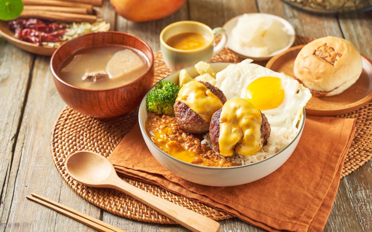 芒果鹹蛋黃白咖哩佐和牛漢堡排