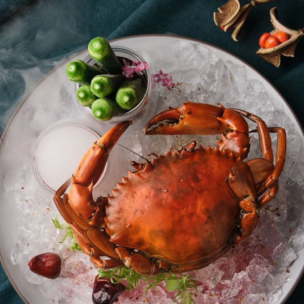 選用18年以上的花雕酒,調和紹興酒不同層次的酒香,融合三種醬油分別取其豆香、醬香、鹹味,加入乾燈籠椒、桂花,將清蒸至八分熟的紅蟳浸漬二天,充分吸取酒香濃郁的醬汁,蟹肉與蟹黃緊緻,入口散發濃郁甘醇酒香,完美演繹杭幫菜『熟醉蟹』不容錯過的醉人鮮美。