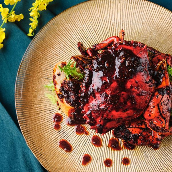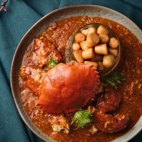 此道辣椒蟹係由成長於新加坡的名廚鄺啟明指導之招牌料理,充滿道地新加坡風味!融合小米辣、美人椒、辣椒醬、馬拉盞不同層次的辣香鹹鮮,艷紅色澤誘人食指大動,厚實蟹肉沾佐辣椒醬汁入口,滋味鮮辣噴香,搭配金黃酥香的小饅頭替代銀絲卷,精緻美味減少負擔。