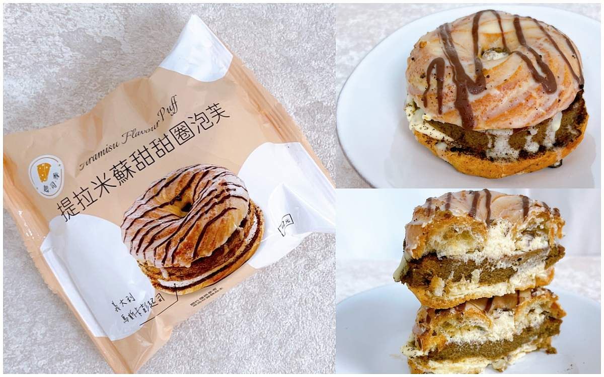 上下層泡芙包覆夾餡,中間是浸潤了咖啡的海綿蛋糕,並且融有馬斯卡彭起司,吃起來層次超豐富,還有種大人感的咖啡香!