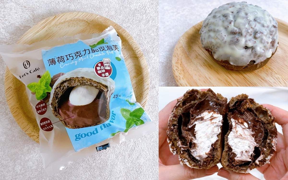 在泡芙上鋪上一層薄荷綠脆皮,內餡為薄荷鮮奶油加上巧克力卡士達,冷藏後食用更加涼爽。