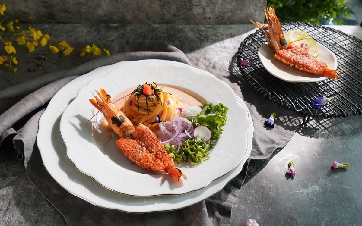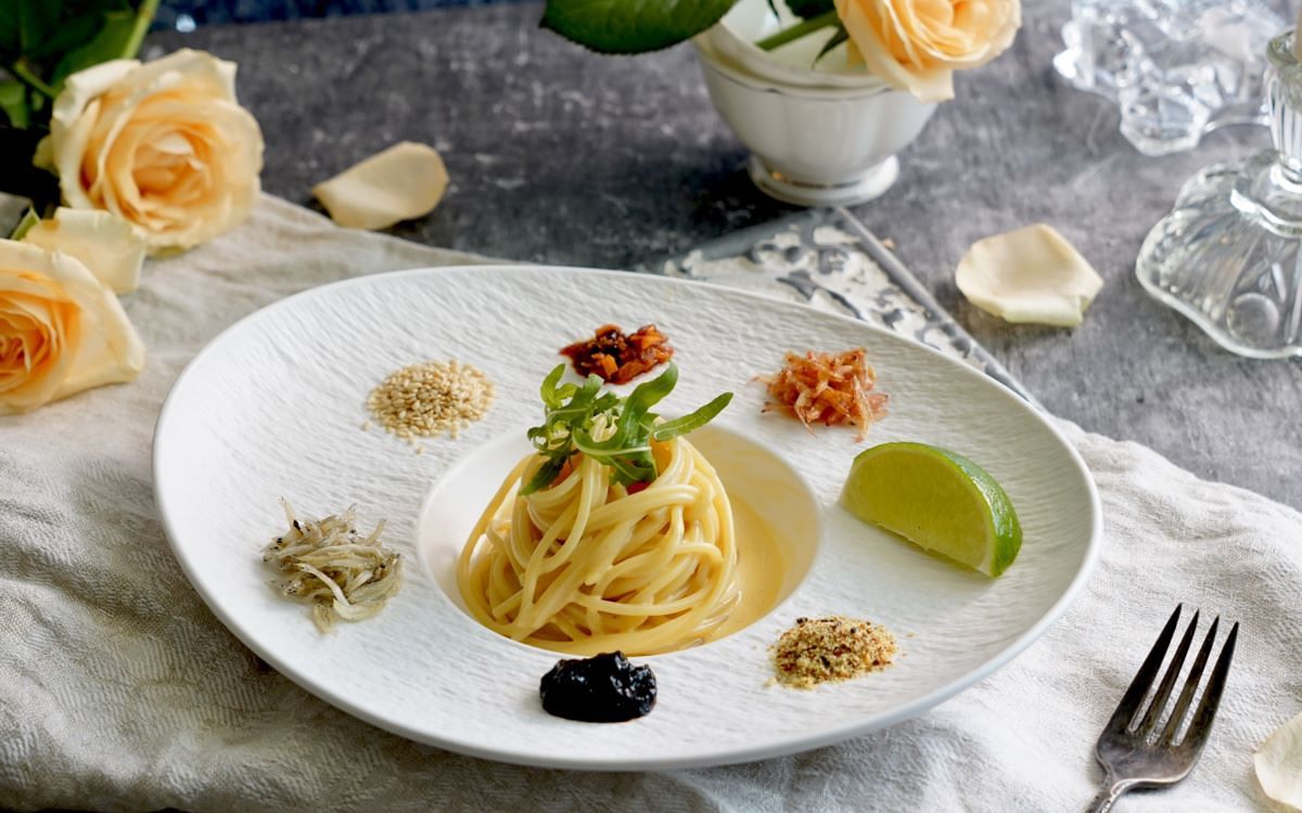 除此之外,打破麵食不利維持體態的觀念,選用升糖指數較低(低GI),100%杜蘭小麥麵粉製作的義大利麵條,不僅延續微兜petit doux富異國感的創意料理風格,Pd by petit doux進一步考量女性喜好和飲食潮流,以日式食材與調味為特色,研發優雅細緻、風味清爽的「和風義大利麵」。其中「極上什味義大利麵」結合Cacio e pepe與Carbonara兩種義大利麵形式,可隨個人喜好自由搭配日式胡麻油辣醬、烘烤櫻花蝦、白芝麻粒、新鮮檸檬片、柚子七味粉、昆布醬、吻仔魚,調配專屬自己獨一無二的風味;「絲綢生乳大蝦義大利麵」則以北海道鮮乳呈現清爽的乳香和清甜滋味,襯托出明太子的鹹香,整體香氣飽滿又輕盈不膩口。
