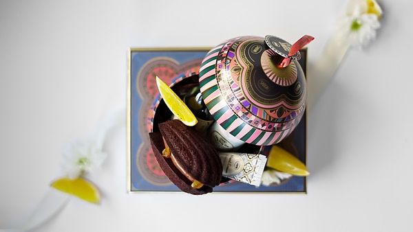 品嚐一口有橙橘香氣的巧克力肥德蓮、搖晃著杯中帶有橙酒風味的調酒