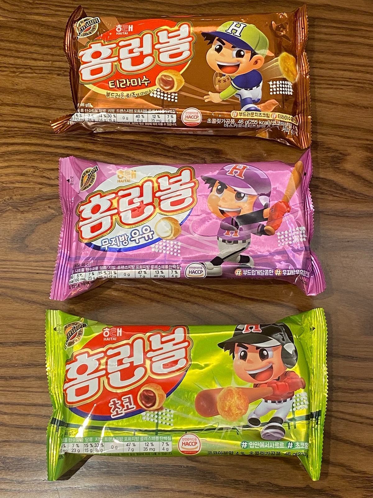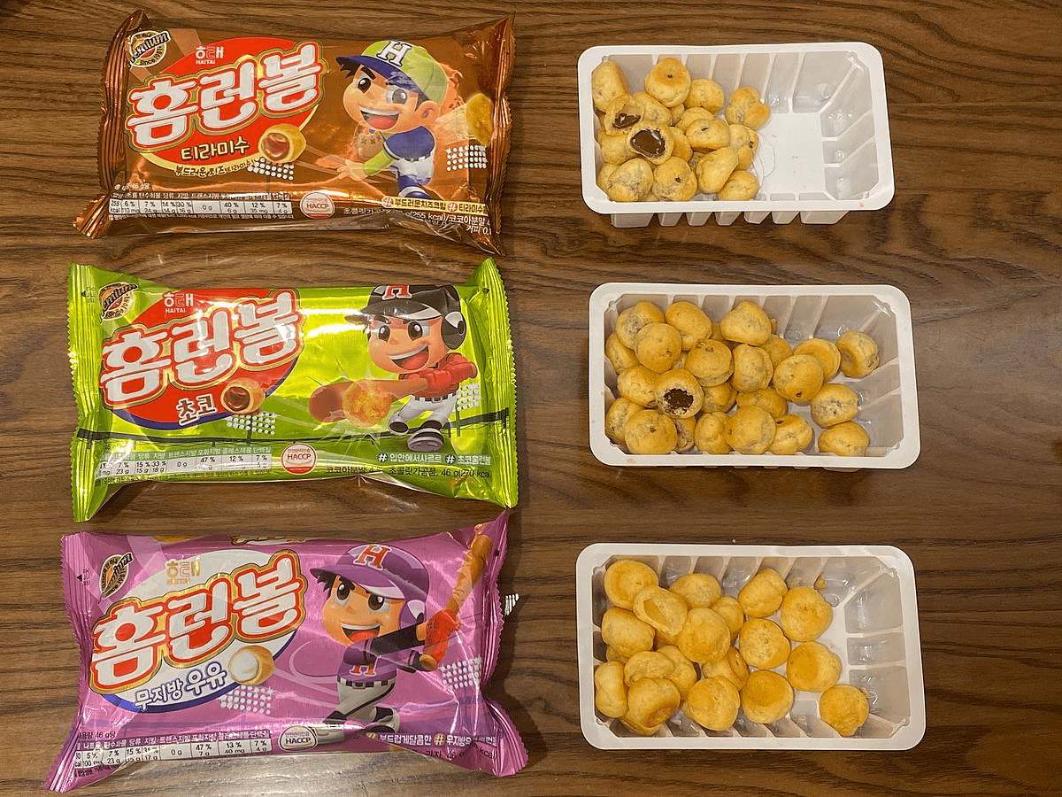 來自韓國食品大牌HAITAI的海陀韓式鬆軟小泡芙,正式名稱其實叫做「全壘打球」(해태「홈런볼」),韓文直接念作英文的「Home Run Ball」,是每一個韓國人一定都耳熟能詳的著名零食。搭配著可愛棒球運動員造型的全壘打球當然一定會與棒球有關,據說,它曾經也是韓國職棒創始球隊海陀虎在棒球比賽時的幸運物哦。