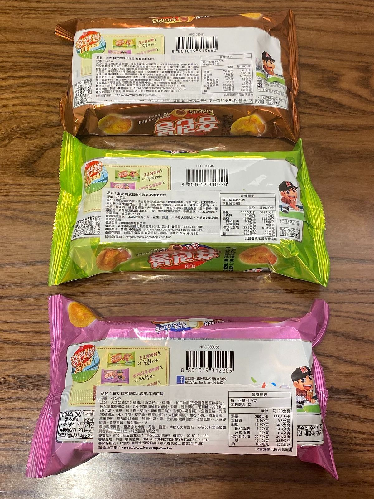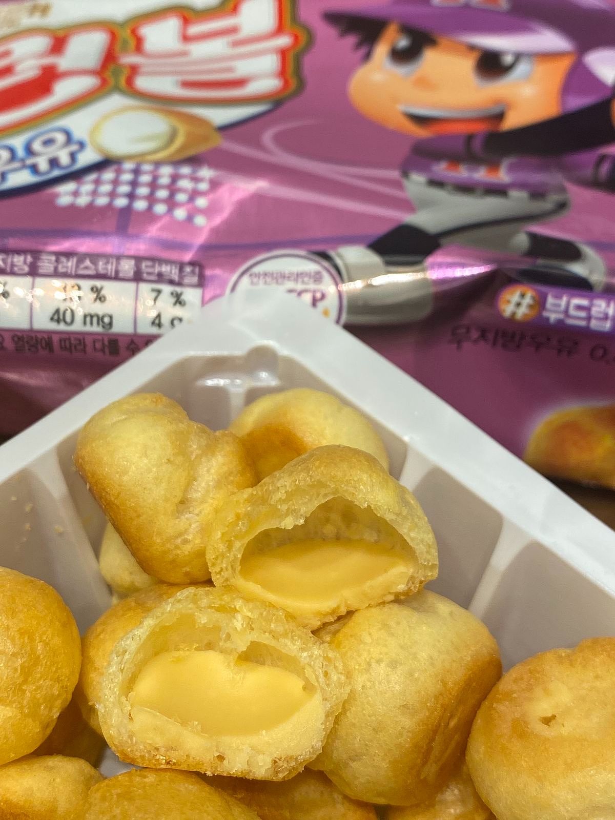 與義美小泡芙同樣口味的牛奶全壘打球,實際上味道與口感都不太一樣,著名的鬆軟口感,直接被進口商命名為「韓式鬆軟小泡芙」。
