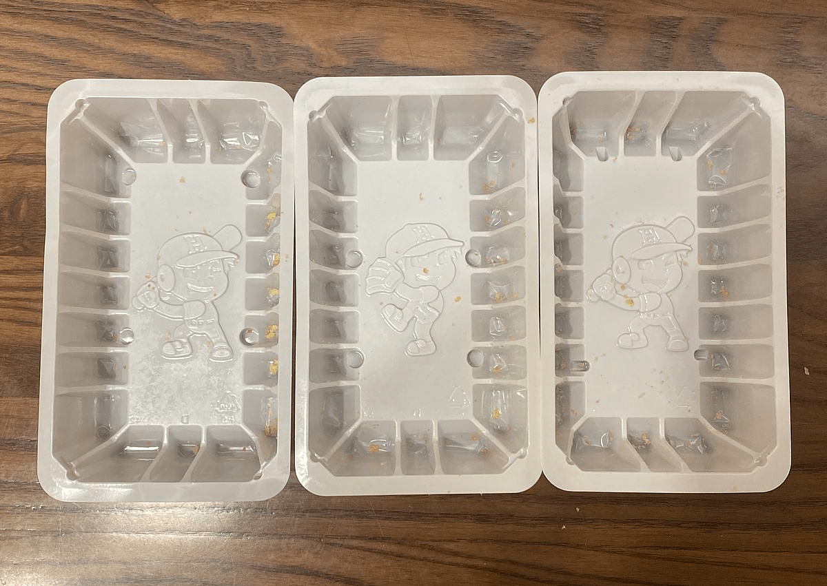 把所有的全壘打球統統吃光之後,發現它原來塑膠盒底下還有一個棒球運動員!真是太可愛了呢。