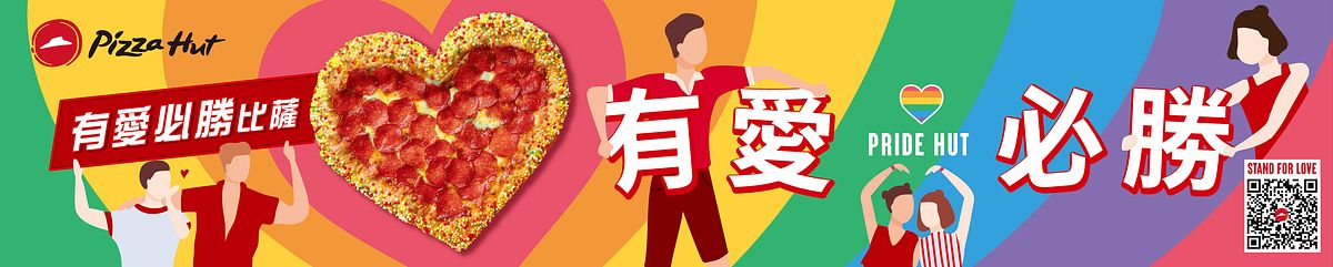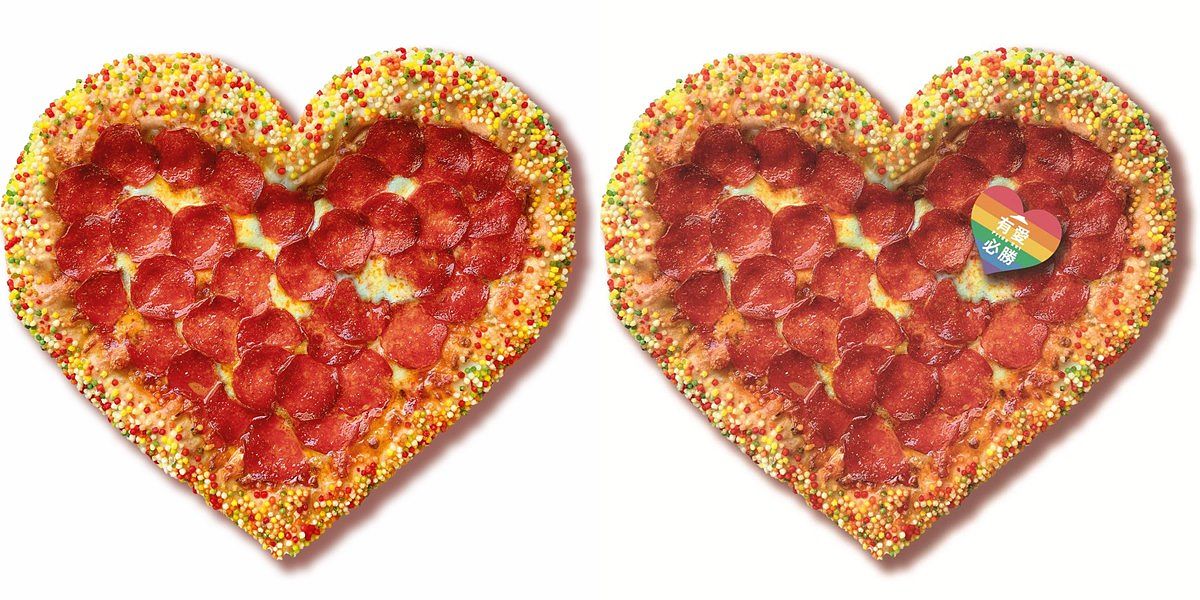十月彩虹驕傲月,在今年線上同志遊行盛大舉辦的前夕,必勝客暖心打造「有愛必勝比薩」,以「心型造型」及「彩虹餅皮」,代表著「愛」與「平等」;更以「彩虹比薩支撐架」,高喊「有愛必勝」,為每一份平等的愛加油打氣!即日起限時限量預購,每間門市限量20個,在這個秋天,讓必勝客用最真摯的心、最溫暖的行動,與大家一起勇敢說愛!