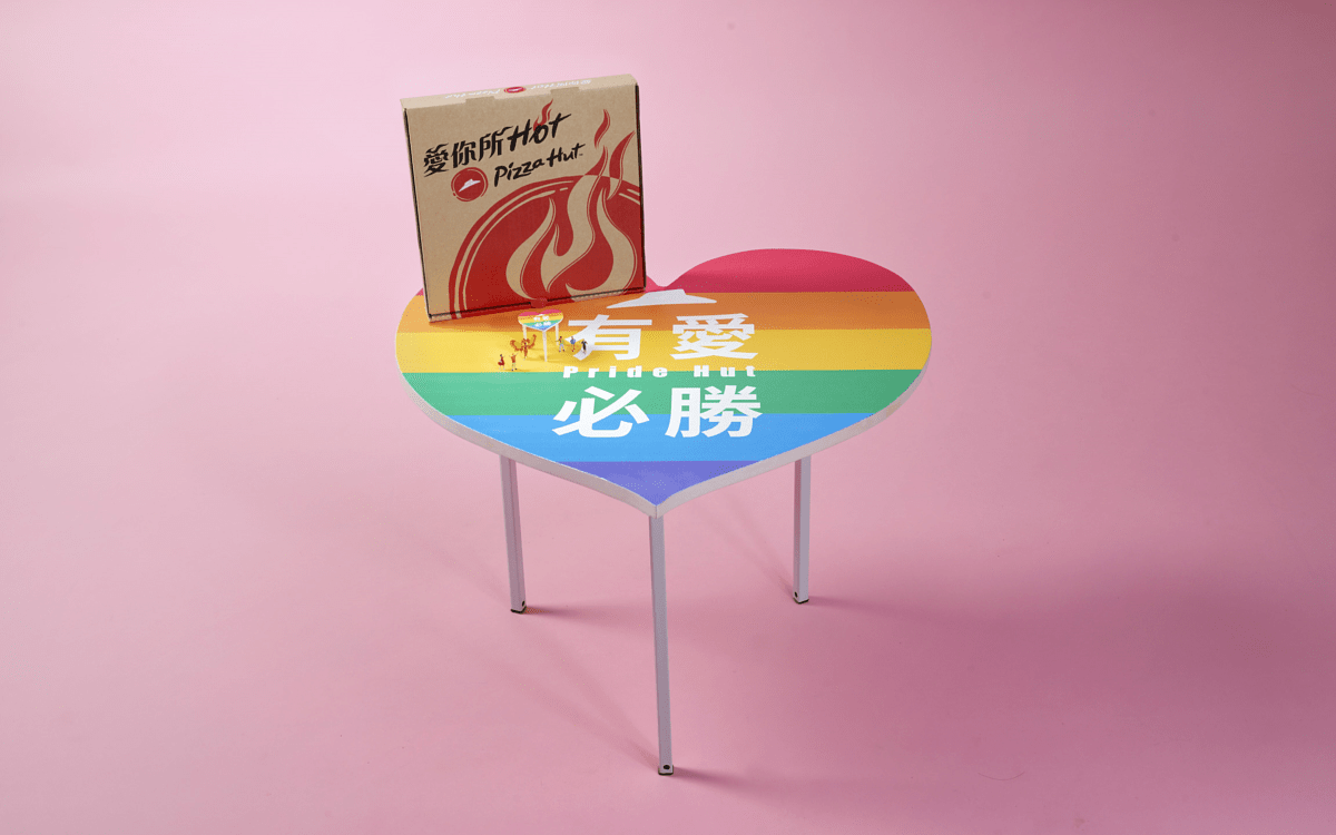 每次打開比薩盒,都能看到撐住每一片比薩的比薩支撐架,讓每份比薩HOT到家之後,能呈現完美面貌。在今年彩虹驕傲月,必勝客更帶來驚喜巧思,將比薩支架變身成為「有愛必勝」彩虹支撐架,不只撐住每一片比薩,也撐起每一份平等的愛!這麼具有意義的彩虹比薩支撐架是只有購買「有愛必勝比薩」才有的開盒驚喜哦!此外,必勝客還將彩虹比薩支撐架等比例放大520倍,製作出全球第一張彩虹比薩支撐架造型桌,把愛心無限放大,更將在必勝客官方Facebook粉專活動送出,只送不賣!