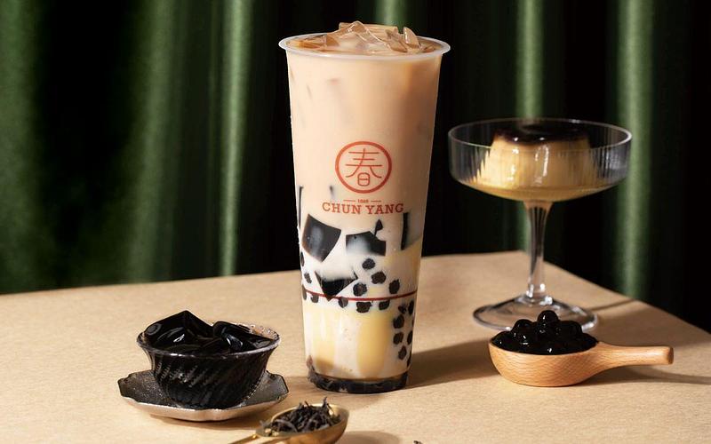 茶底嚴選熟成蜜香紅茶,獨有的濃郁果香調,倒入在地產銷小農鮮奶,茶韻圓潤、奶香醇厚,調和出鮮奶茶的完美比例,加入精選人氣配料「波霸珍珠、手作嫩仙草、布丁」混搭出豐富層次口感,帶來味蕾與視覺的幸福饗宴。