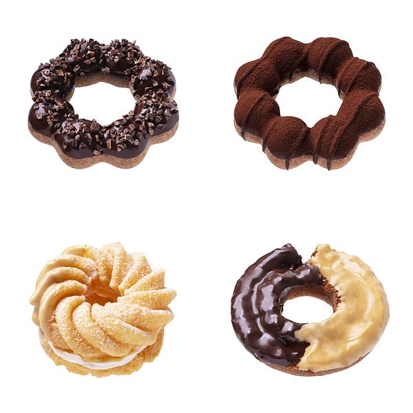 此外還有五款巧克力季限定甜甜圈,以波堤、歐菲香、法蘭奇等不同口感,帶來豐富多變的巧克力甜點。使用Mister Donut 獨家日本巧克力醬,香甜濃郁,大小朋友都會喜歡。「可可碎粒波堤」嚴選頂級巧克力品牌製成之可可碎粒搭配,酥脆口感富含可可果實香。「生可可波堤」撒上滿滿可可粉,Q軟充滿咬勁,層層堆疊如生巧克力般的香濃美味。「鹽焦糖杏仁巧克力波堤」、「鹽焦糖可可歐菲香」、「鹽焦糖牛奶法蘭奇」則以不同口感甜甜圈沾裹大人感的鹽焦糖風味巧克力,更襯托出可可香氣,帶來多層次享受。