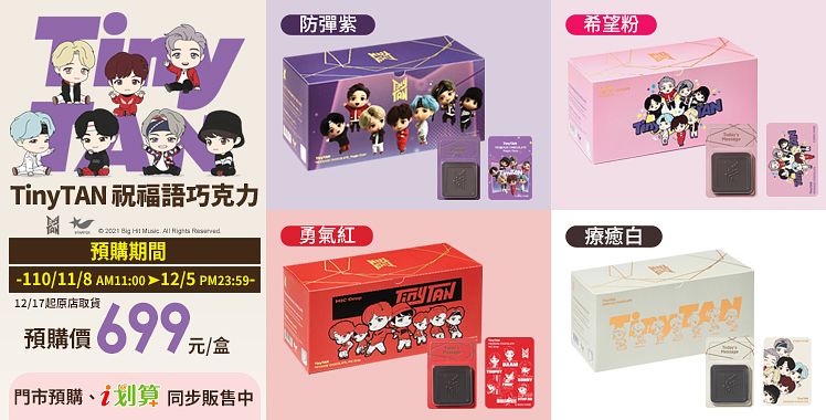 TinyTAN祝福語巧克力(防彈紫/希望粉/勇氣紅/療癒白) 699元/盒