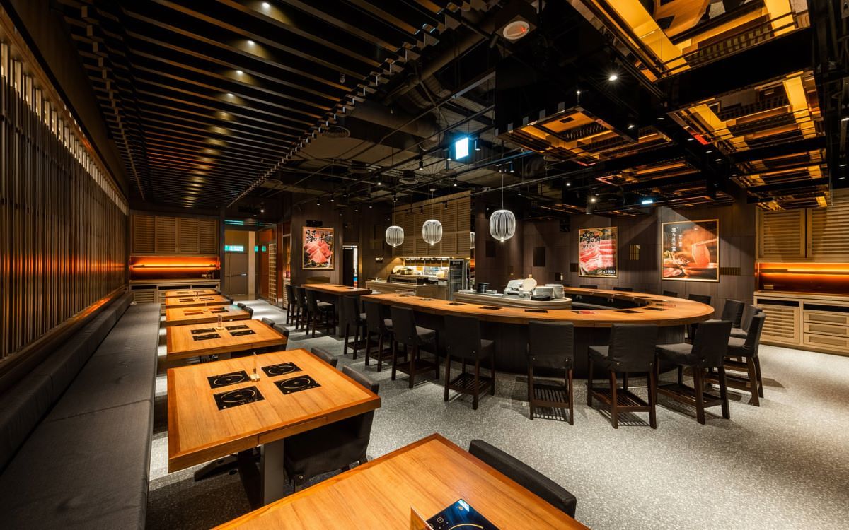 提供讓人身心皆暖的日式火鍋「黑毛屋本家」,以道地的涮涮鍋、壽喜燒、水炊鍋、摩滋鍋四大日本傳統鍋物,精選日本和牛、西班牙Bellota伊比利豬、黑羽土雞頂級食材,從湯底、醬料、逸品,皆堅持純天然的品質,擄獲許多輕熟齡客群的心。新開幕的「黑毛屋本家SOGO復興店」,50坪空間共48席次,設有偌大的U型吧檯、4人桌座位與1間包廂滿足各式需求。此次空間設計跳脫以往京都風格、紅黑調性,延續傳統的日本神社天花、格柵設計,改以金銅色光澤新穎呈現,閃爍著銀白光線條吊燈、金色箱型燈,點綴出整體空間的低調奢華感,給予截然一新的頂級鍋物暖心享受。