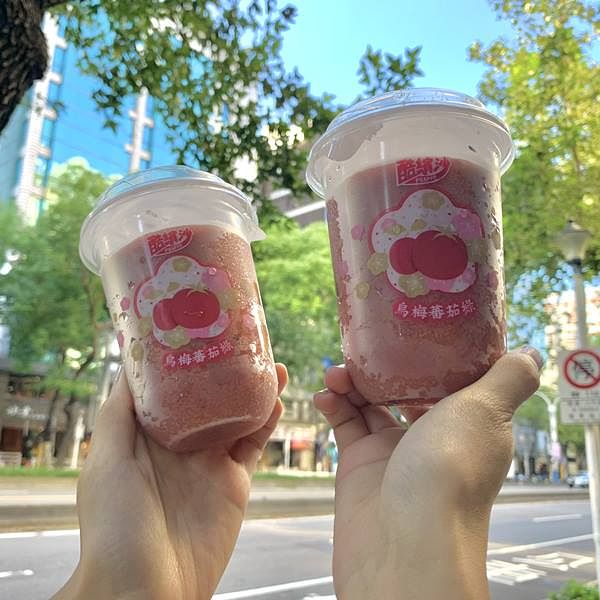 以傳統甜點蕃茄蜜餞為發想,並加入爽口解膩的烏梅飲品製成,每口都可以吃到蜜餞果肉,口感十足